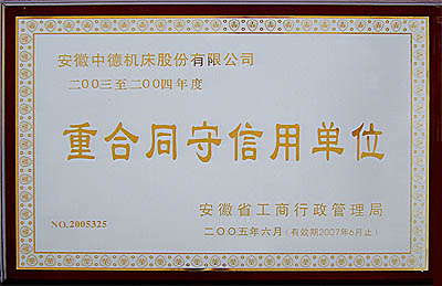 為認(rèn)真貫徹落實十六大提出的“整頓和規(guī)范市場經(jīng)濟秩序,健全現(xiàn)代市場經(jīng)濟的社會信用體系”的精神,規(guī)范市場經(jīng)濟秩序,推動社會信用制度建設(shè),培養(yǎng)良好的社會信用環(huán)境,樹立誠信為本的社會風(fēng)尚,表彰我省企業(yè)在市場交易中,堅持“守約重信”的經(jīng)營道德,弘揚先進的企業(yè)合同管理方式,倡導(dǎo)誠信理念,服務(wù)經(jīng)濟建設(shè),提升企業(yè)信用等級,根據(jù)《安徽省重合同守信用單位認(rèn)定暫行辦法》的規(guī)定,組成了以省工商局、省建設(shè)廳、省質(zhì)監(jiān)局、省國稅、省地稅、省消協(xié)和銀行等部門參加的安徽省重合同守信用單位評審委員會,對全省申報2003-2004年度省級“重合同守信用”的單位,依照程序,嚴(yán)格評審?,F(xiàn)結(jié)果已揭曉,我公司為獲些榮譽的企業(yè)之一。