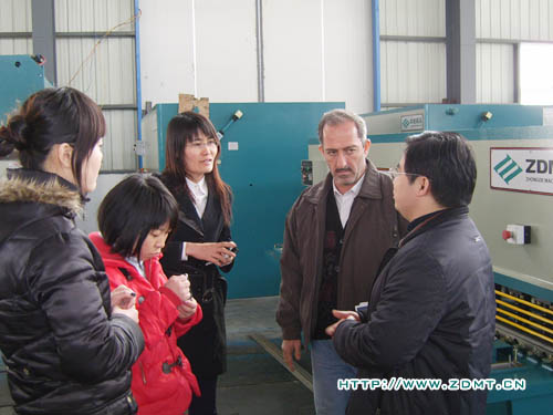 Haiyl A.AI Rawy先生對中國機械行業尤其是剪板機折彎機非常的熟悉,他表示他們非常重視機器的質量,來中德也是由于中德機器在海內外都享有良好的聲譽。參觀前,Haiyl A.AI Rawy還特意詢問我們在阿聯酋有沒有代理,當公司領導回答說目前還沒有時,他釋然一笑,表示希望能夠與中德建立良好的合作關系。在中德的成品車間,Haiyl A.AI Rawy先生聽取了我公司營狀況及近遠期規劃的介紹,并就每一款機床的詳細情況進行了介紹,重點詢問了其性能及售價等。他對我們的數控折彎機尤其感興趣,要求當場進行測試。Haiyl A.AI Rawy特意讓自己的助理拍下了整個操作過程,在我公司工程師的幫助下,Haiyl A.AI Rawy還進一步了解了折彎機數控系統的編程方面的問題。