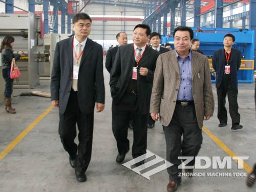 開幕式之后,展會現(xiàn)場當(dāng)即人頭攢動,場面熱烈。中國機電產(chǎn)品進出口商會副會長王貴清等一行則抓緊時間來到中德機床,對展會企業(yè)進行實地考察和深入了解。 博望鎮(zhèn)享有“中國刃模具第一鎮(zhèn)”、“中國剪折機床第一鎮(zhèn)”的盛名,目前擁有刃模具生產(chǎn)企業(yè)近500家、機床制造企業(yè)近100家,年產(chǎn)值60多億元,是全市經(jīng)濟持續(xù)快速發(fā)展的重要增長點。我公司作為本地鍛壓機床企業(yè)的代表,熱烈歡迎了王會長和馬鞍山市及其他各位領(lǐng)導(dǎo)的蒞臨。