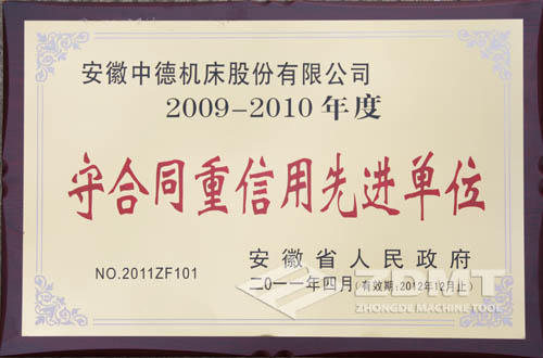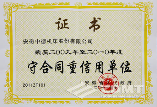 這也是我公司第三次獲得省政府授予的“守合同重信用先進(jìn)單位”稱號(hào),公司不斷發(fā)揚(yáng)“守合同、重信用”的良好傳統(tǒng),不斷探索、潛心經(jīng)營(yíng),逐漸建立、健全了一套適合市場(chǎng)規(guī)律和行業(yè)、企業(yè)自身特點(diǎn)的合同管理機(jī)制,強(qiáng)化了合同的管理,確保了合同的履行,呈現(xiàn)出合格率100%,優(yōu)良率85%以上,履約率達(dá)100%的喜人景象,取得經(jīng)濟(jì)效益和社會(huì)效益的雙豐收,贏得了社會(huì)各界的廣泛認(rèn)可,增強(qiáng)了社會(huì)大眾對(duì)“中德機(jī)床”品牌的認(rèn)知度,加速了品牌傳播、提升了品牌知名度,樹(shù)立了中德機(jī)床公司良好的社會(huì)形象。